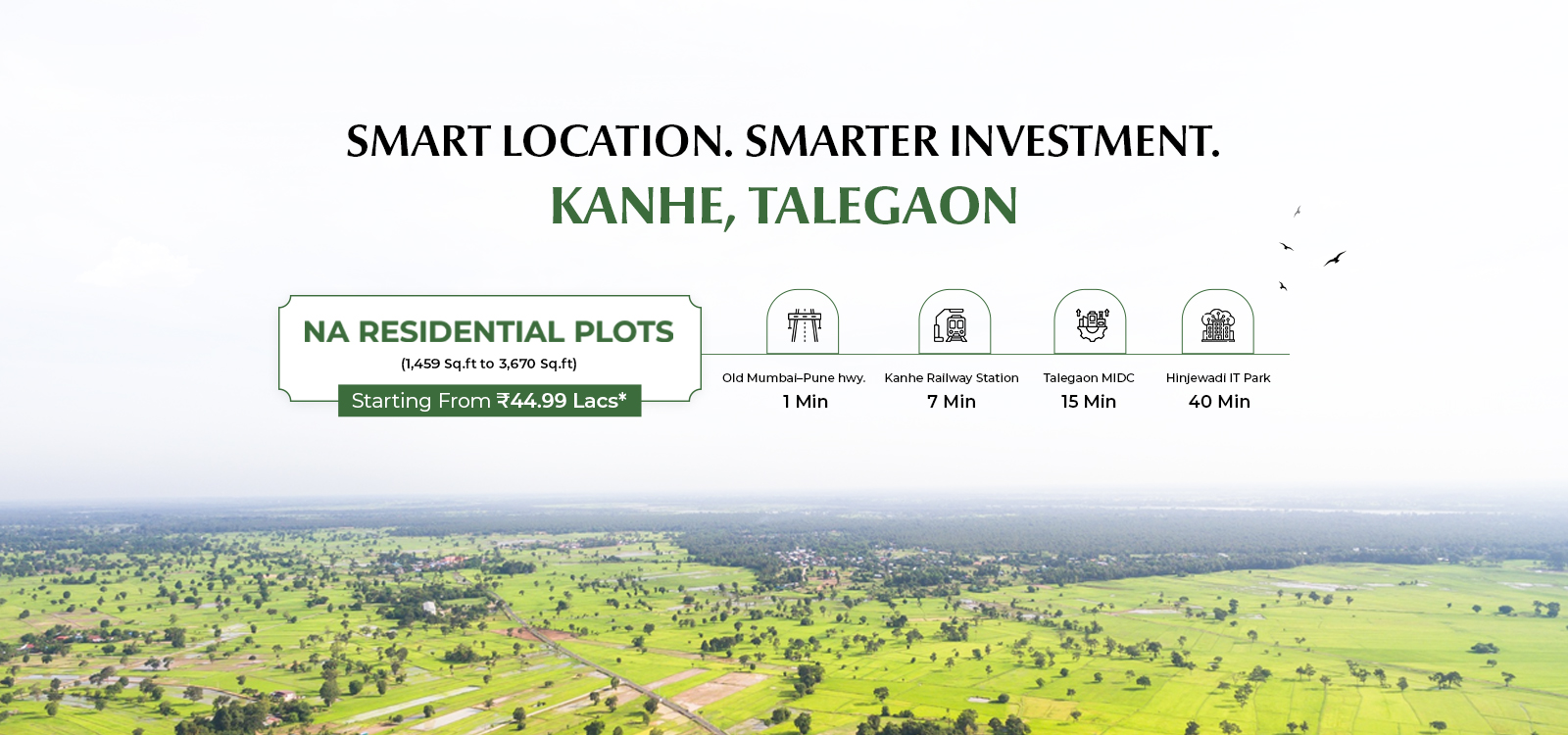 Welcome to Codename Aarambh Meadows, a Premium Living experience close to nature and Pune’s major growth corridor in Kanhe, adjacent to Talegaon, Chakan MIDC, and Hinjewadi. Green, serene acres of land located just near Kanhe Railway Station and the Old Mumbai–Pune Highway.